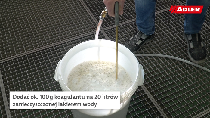 Zestaw służy do uzdatniania zanieczyszczonej wody lakierniczej z systemów odzysku farby, urządzeń aplikacyjnych lub systemów zalewowych do profesjonalnego odprowadzania do kanalizacji.